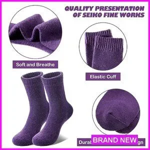 Wool Crew Socks Winter Warm Hiking Thick Cozy Boot Socks 5 Pairs
