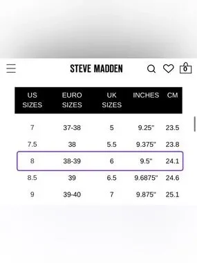 Women’s Size EU38 / US8 / UK6 / CM24.1