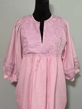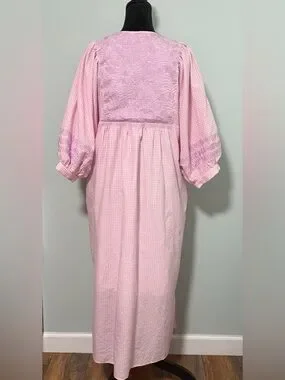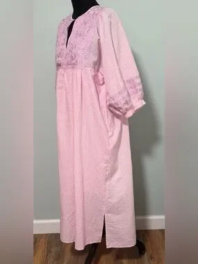 J. MARIE Puff Sleeve Gingham Embroidered Maxi Dress - Large