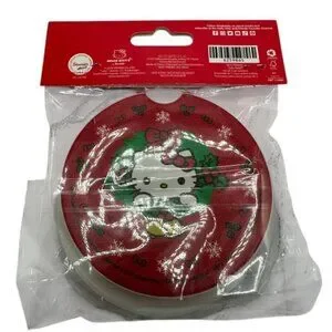 Keep your car clean as you travel to visit loved ones by using these Hello Kitty Car Coasters. These red coasters are embellished with holly leaves, snowflakes, and Hello Kitty's iconic bow along the edge. Hello Kitty is wearing a wreath on one coaster, while she enjoys a cup of hot chocolate on the other. With a notch at the top, these round coasters are easy to place and remove when needed!