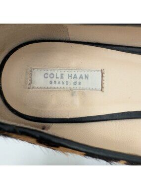 Cole Haan Chelsea Leopard Printed Calf Hair Pointed Toe Loafers 7B Slit Heel