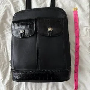 One World By Brighton Shoulder Bag Black Crossbody Croc Embossed Trim