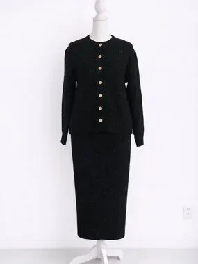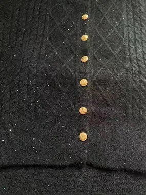 NWT Black Knit Set Gold Button Sparkle Elegant Outfit M