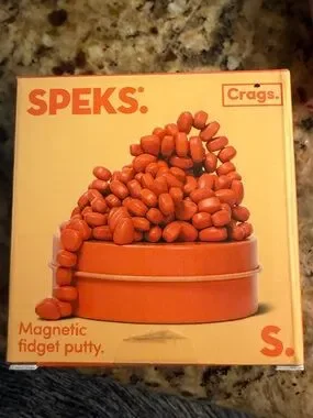 Crags magnetic fidget putty in a vibrant orange color. Engaging tactile toy for sensory play and stress relief. Easy to shape and rearrange with magnetic pebble pieces. Bright orange finish adds playful appeal.