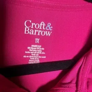 Bright pink sleeveless polo shirt from Croft & Barrow. Features a collared neck and a half-zip front. Perfect for casual wear.