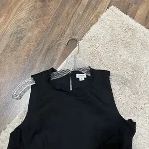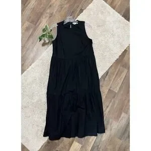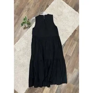 J.crew Size 0 Black Ruffled Neckline Tiered Sleeveless Keyhole Poplin Midi Dress