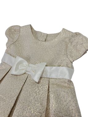 Make her shine at her next event with this stunning Gymboree metallic gold dress. Perfect for the holidays, weddings, or any formal celebration, this dress combines a classic silhouette with high-end sparkle.