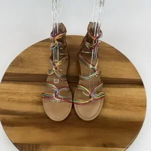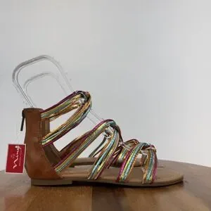 New NWOB Big Kids Girls Nina Marietta Rainbow Metallic Gladiator Sandals Size 6