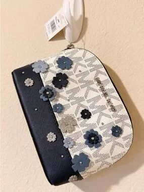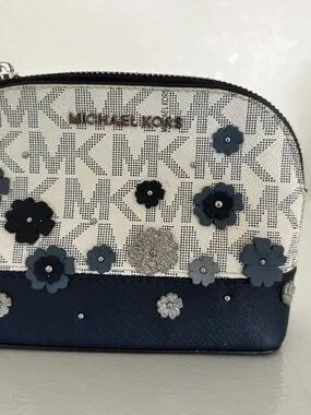Michael Kors Navy & White Floral Applique Travel Pouch