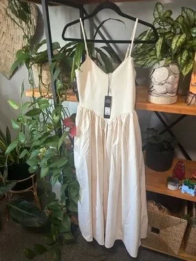 Fashion Nova Classic Midi Dress in Cream | Smalll