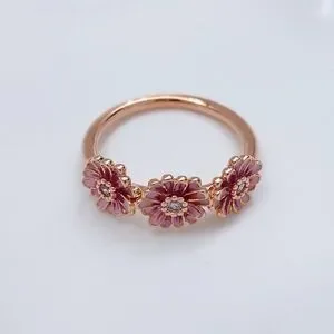 Pandora Pink Daisy Trio Ring Size 7.5 NEW