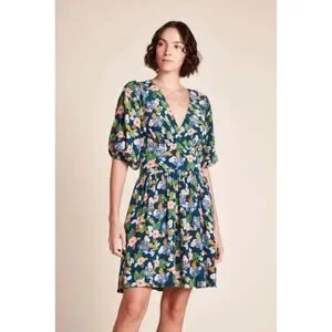 NEW Trovata Birds of Paradis Silk-Blend Gia Dress in Wild Hibiscus Print Size XS