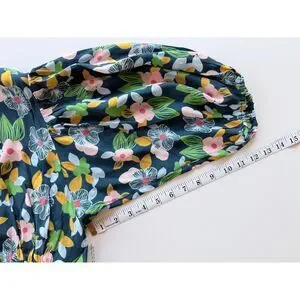 The Trovata Gia is a mini dress printed in Wild Hibiscus. Short and flirty, this style lands just above the knees. This style has a fitted front bodice and smocking at the back for an easy fit. Comfortable and easy with in seam pockets along the side seams and short puffy sleeves.
