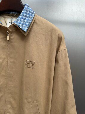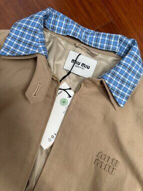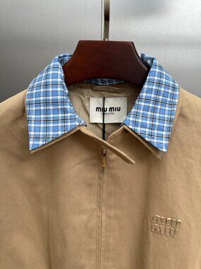 Miu Miu Women's Casual Zip-Collar Faux Two-Piece Jacket — Beige