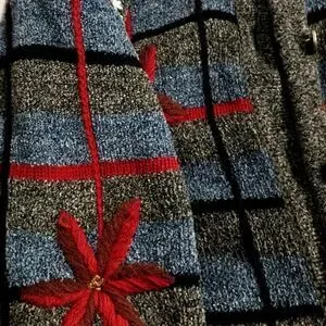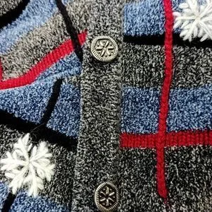 VINTAGE Knit Cardigan Hand Embroidered Holiday Snowflake Gray Red Size L