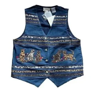 Vintage Casey & Max Denim Cat Vest Size Medium NWT