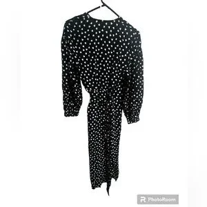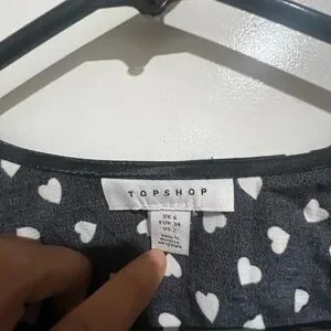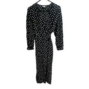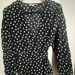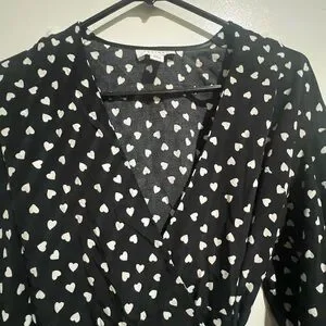 Topshop Heart Print Midi Wrap Dress Black White size 2, preowned, no stains or tears, allover heart print, wrap dress, side tie closure, surplice v-neck, not lined, 100% viscose