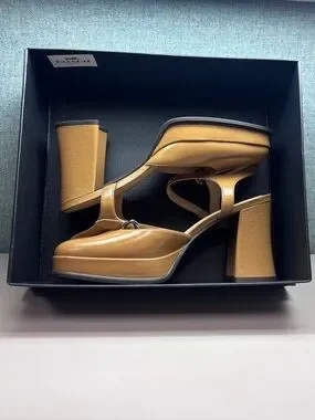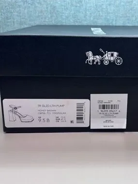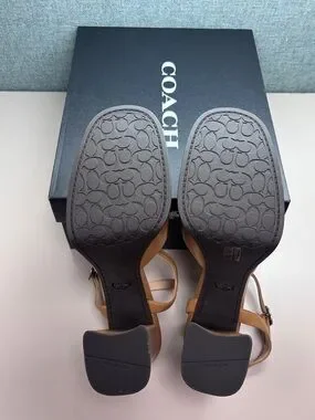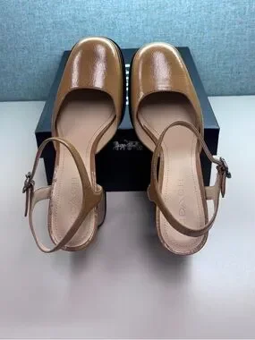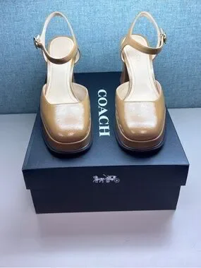 Newn’Box Tea Rose Sz 9.5 Patent Leather Block Heel Pumps by COACH in Honey Brown