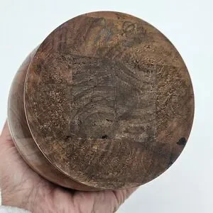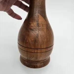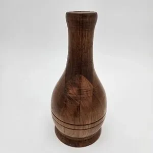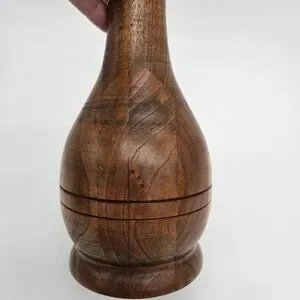 This handcrafted turned hardwood vase is a unique and natural piece of home décor created by a talented artist in the Germany. The sleek and modern design of the vase, inspired by mid-century modern style, features a smooth surface and signed by the artist. Made from high-quality wood sourced from the Germany, this vase is a one-of-a-kind item that adds a touch of handmade charm to any living space.