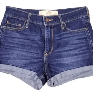 Y2K Hollister Jean Short Shorts High Rise Dark Blue Jr Sz 1 Cuffed Denim