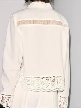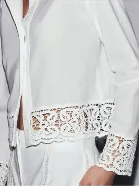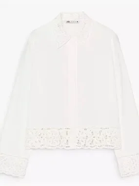 Zara white lace-trim blouse, new with tags.