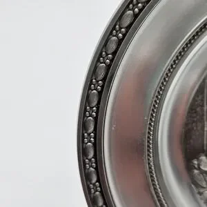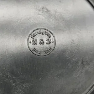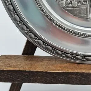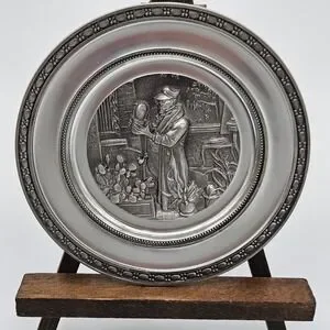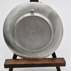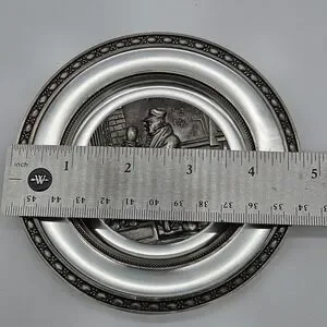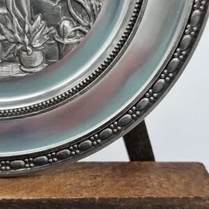 This vintage German pewter plate depicting the Poor Poet manufactured by Adolf Griebhaber is a unique and collectible piece of metalware. Made of high-quality pewter with 94% zinc content, this plate showcases intricate craftsmanship and attention to detail. Originating from Germany, this plate is a representation of German artistry and tradition, making it a valuable addition to any collection of pewter items or nostalgic pieces.