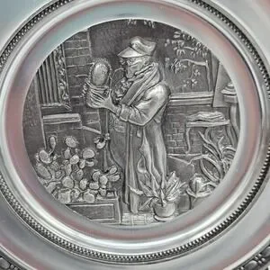 Vtg German Pewter (94% Zinc) Plate Adolf Griebjaber Depucting The Poor Poet
