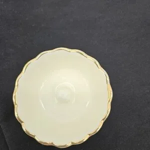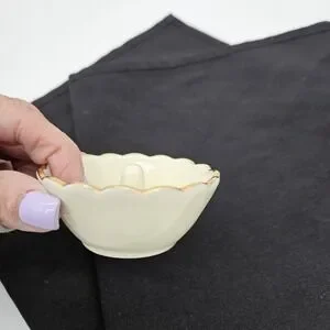 This vintage Lenox ring holder features scalloped edge trimmed in gold, adding a luxurious touch to any vanity or dressing table. Crafted in the United States, this elegant piece is perfect for storing and displaying your favorite rings. Its timeless design and high-quality construction make it a sought-after collectible for those who appreciate fine craftsmanship and vintage aesthetics.