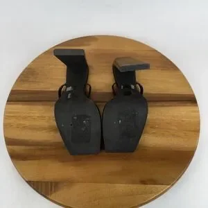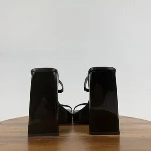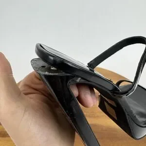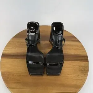 Womens Jeffrey Campbell Hustler Black Patent Leather Heel Slide Sandals Size 9