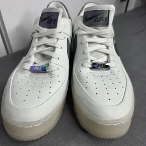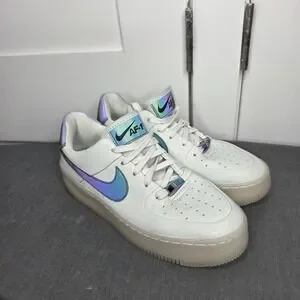 Nike Air Force 1 Women's White Iridescent Swoosh Sneakers Size 7 US