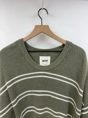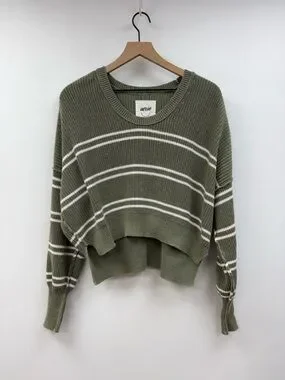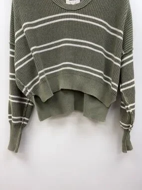Aerie Striped Oversized Boxy Chunky Knit Pullover Slouchy Sweater Green Small
