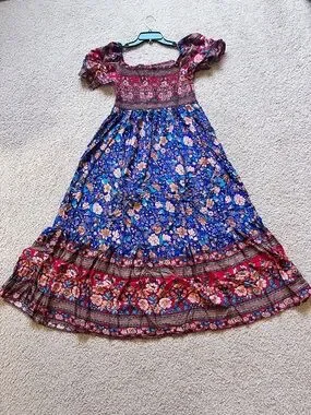 Boho Floral Maxi Dress Smocked Off Shoulder Summer Vacation