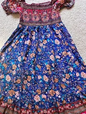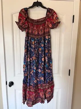 Size :L ,boho, floral maxi dress, cottagecore, vacation dress, flowy dress, summer dress, festival outfit