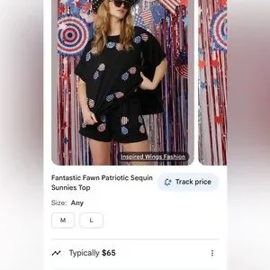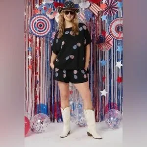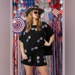 Fantastic Fawn patriotic sequin sunnies graphic tee oversized L