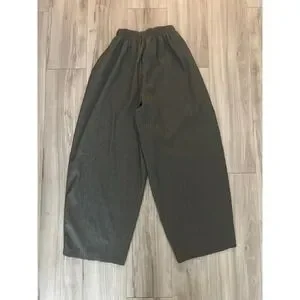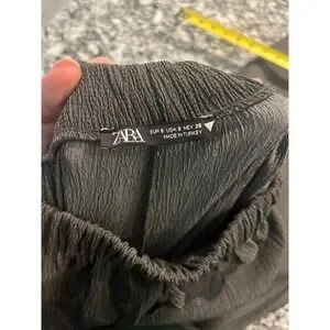 Zara Dark Grey Plisse Wide Leg Pants High Waist Textured Drawstring Small
