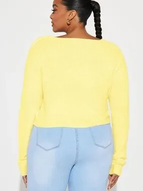 Fashion Nova Yellow Cropped Button-Front V-Neck Cardigan
