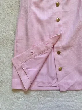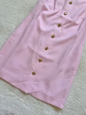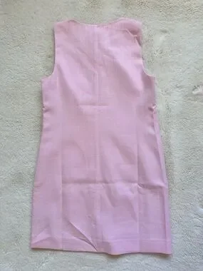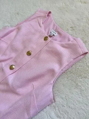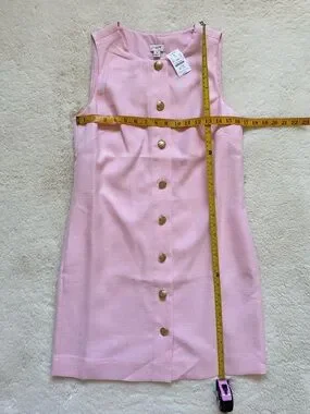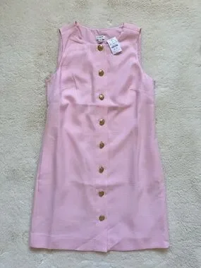 NEW WITH TAGS. size 6. Sleeveless shift dress in light pink. Front gold decorative button detail. Clean, streamlined silhouette. Feminine and polished look.