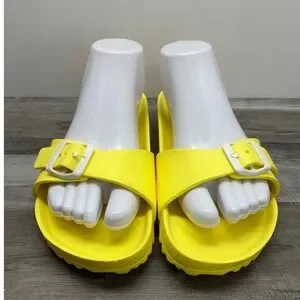 Birkenstock Madrid EVA Neon Yellow Single Strap Slide Sandals Mens 7 Womens 9 40