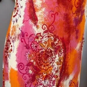 Stunning dress in the most perfect sunset colorway, paisley print, adorned with sequins throughout. Slits on the bottom for comfortability, and stretchy fabric. Some loose and missing sequins, but no rips or stains. No brand tag, no size tag. Best fit medium/large.