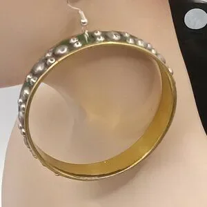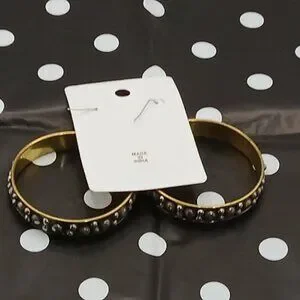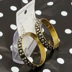 Black Studded Brass EARRINGS 2 Inch Pierced Goth Punk Boho India