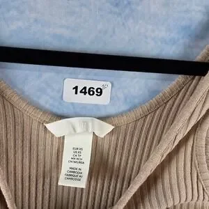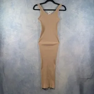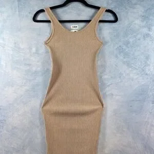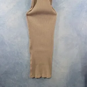 HM Ribbed Knit Midi Dress Tan Beige Sleeveless Bodycon Scoop Neck XS