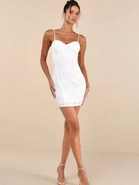 Lulus Aglow With Love Ivory Mesh Sequin Bustier Bodycon Mini Dress White