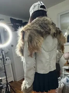 Lux Genuine Fox Fur & White Leather Vintage Jacket