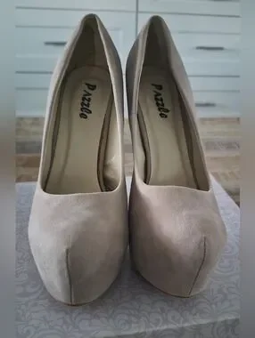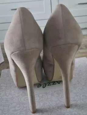 PazzlrClassic Nude Platform High Heels - Women 7.5 Faux Suede