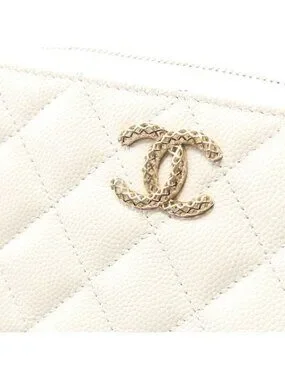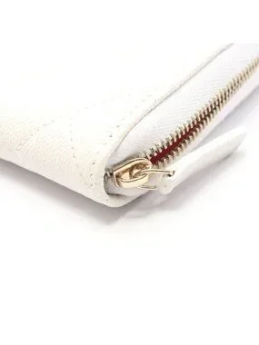 This is an authentic Chanel Round Wallet Quilted in White calf leather. The wallet features the iconic Chanel CC logo hardware and a quilted diamond pattern design.