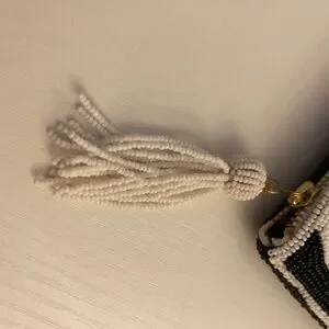 This is a multi-colored bead handcrafted handbag by Haitian artisans in great pre-owned condition. No beads missing.