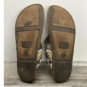 Sam & Libby Womens 9 Gold Black Geometric Embroidered Cork Thong Slide Sandals