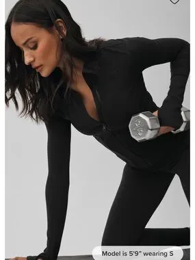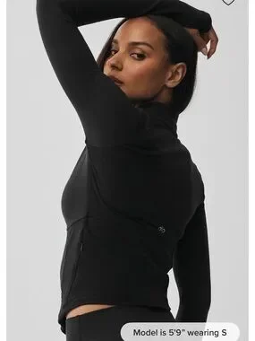 Waist-snatching corset body? Cute curved cut in front? Slim, smoothing fit? Check, check, and check. This jacket does more than flatter the figure, though: It has functional performance features, too, like a full front zipper, thumbholes and hip pockets. Plus, it’s made from Airbrush—an ALO signature fabric that feels like wearing a cottony-soft hug.