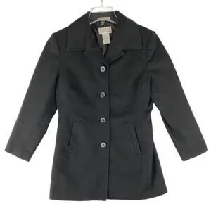 John Paul Richard Women's S Textured Cotton Black Trench Pea Coat Uniform Petite