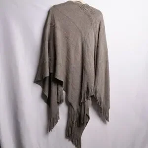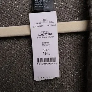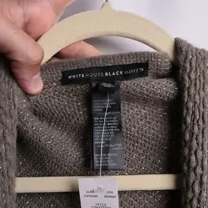 White House Black Market Yarn Ruana Womens M/L Mercury New Metallic Fringe Wrap